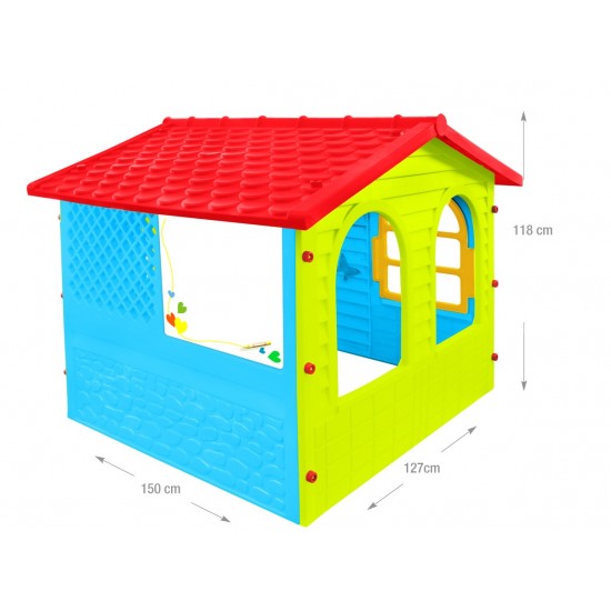 Ένα χαριτωμένο σπιτάκι κήπου για πολύωρο παιχνίδι! Κερδίζει τις εντυπώσεις με τα ζωηρά χρώματα του και τον μοντέρνο σχεδιασμό του. Το παιδάκι σας θα αναπτύξει την δημιουργικότητα του μέσω του παιχνιδιού ρόλων, και του πίνακα ζωγραφικής που διαθέτει!